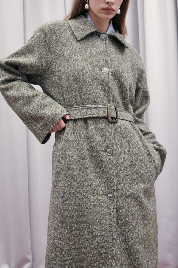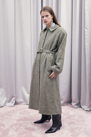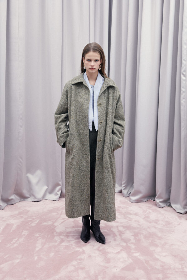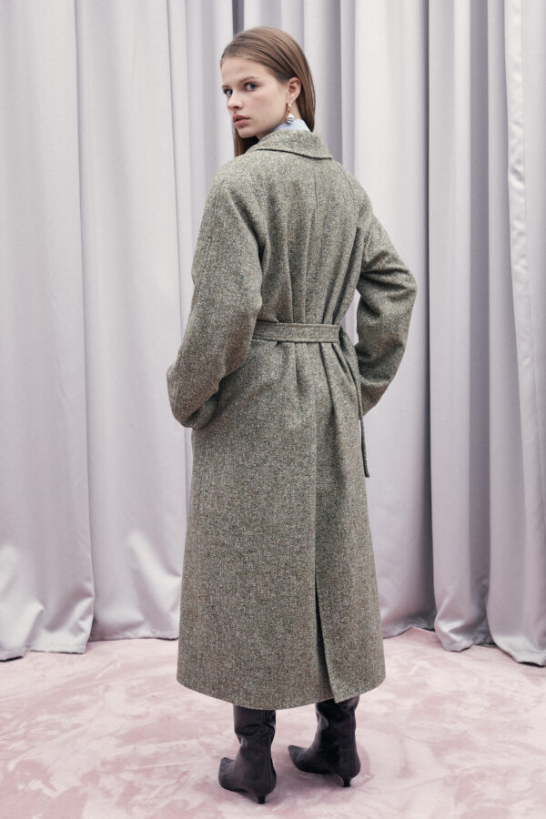 - Herringbone coat, comfortable fit with hidden pockets at the front and collar.