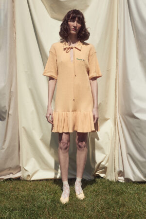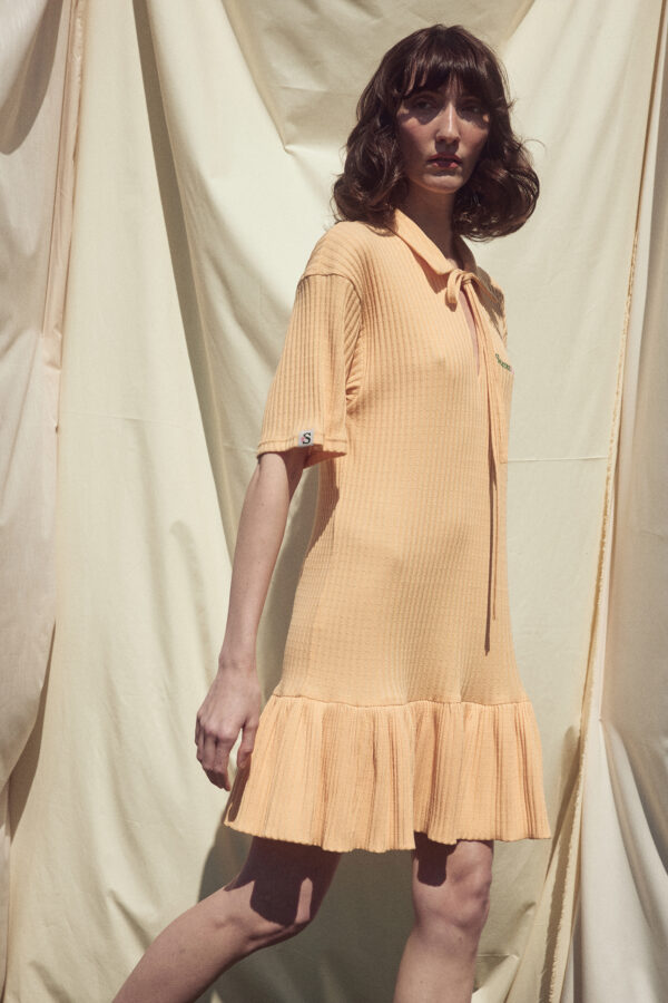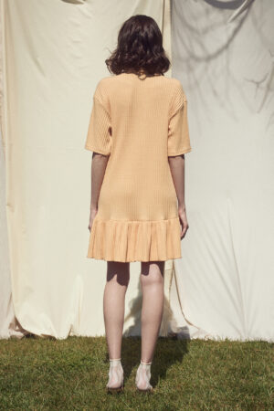 Regular fit knit mini dress with straight cut and ruffle hem.