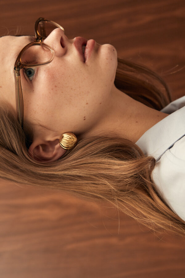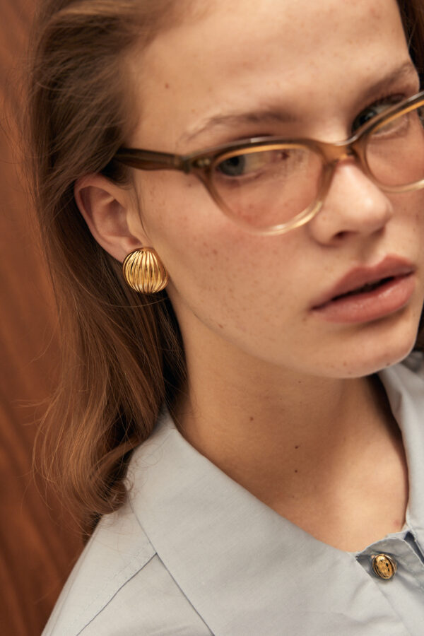 earrings inspired by the buttons of the collection.