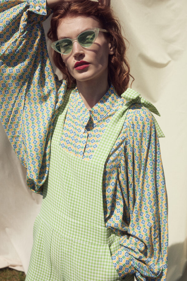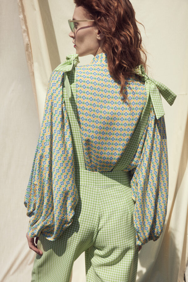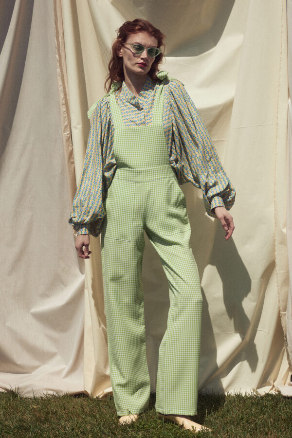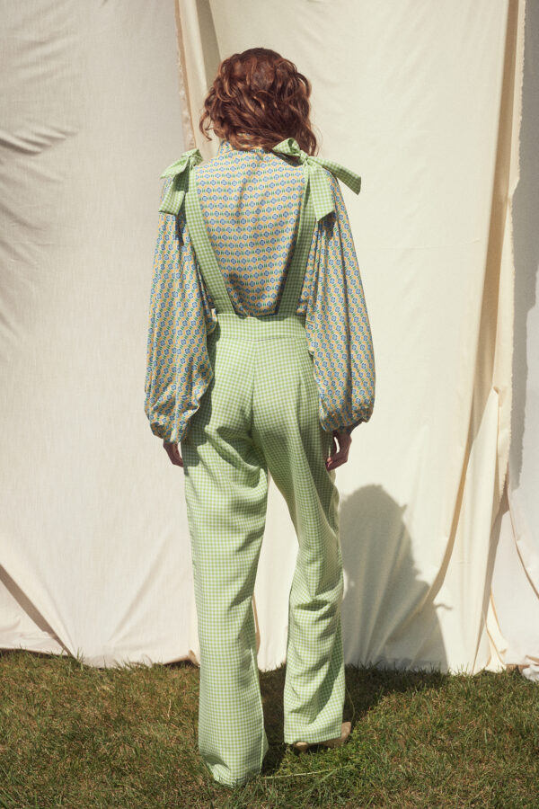 Regular fit long checked dungarees with adjustable straps and concealed zip.