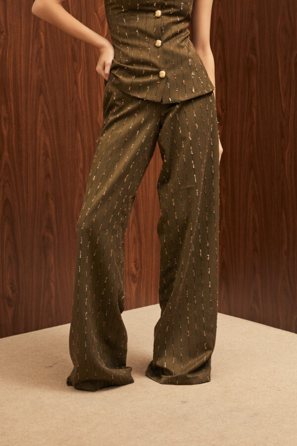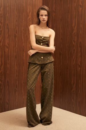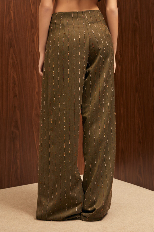 - Straight-leg pants with side zipper closure.