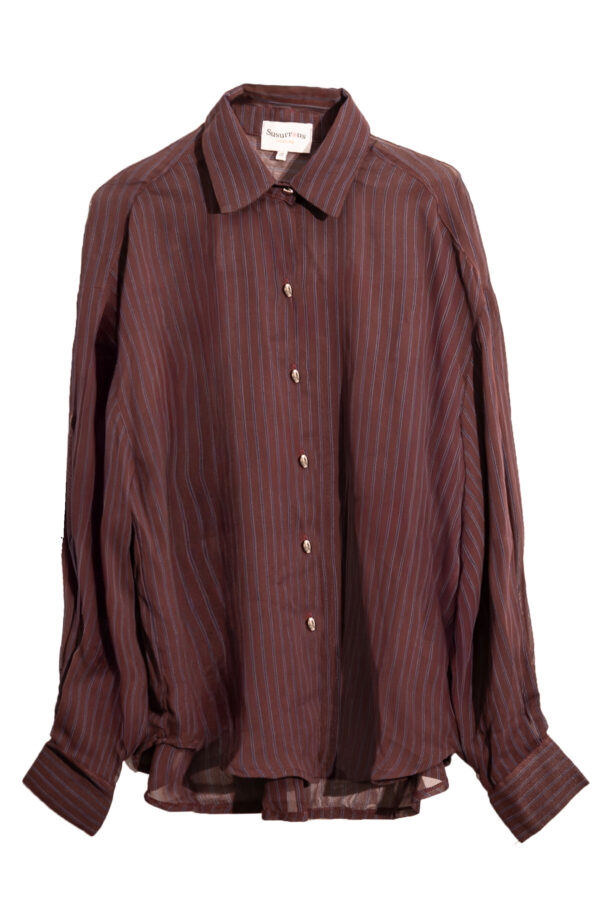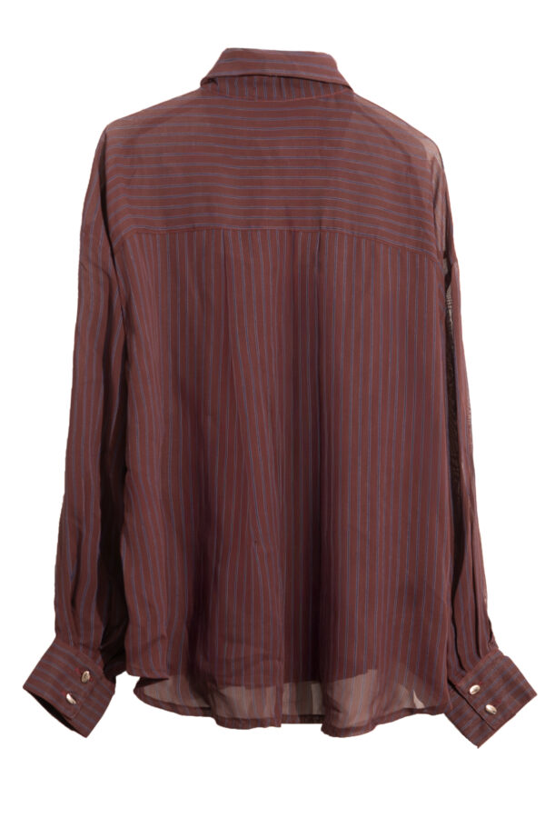 - Semi-sheer striped shirt featuring a classic collar and long sleeves.