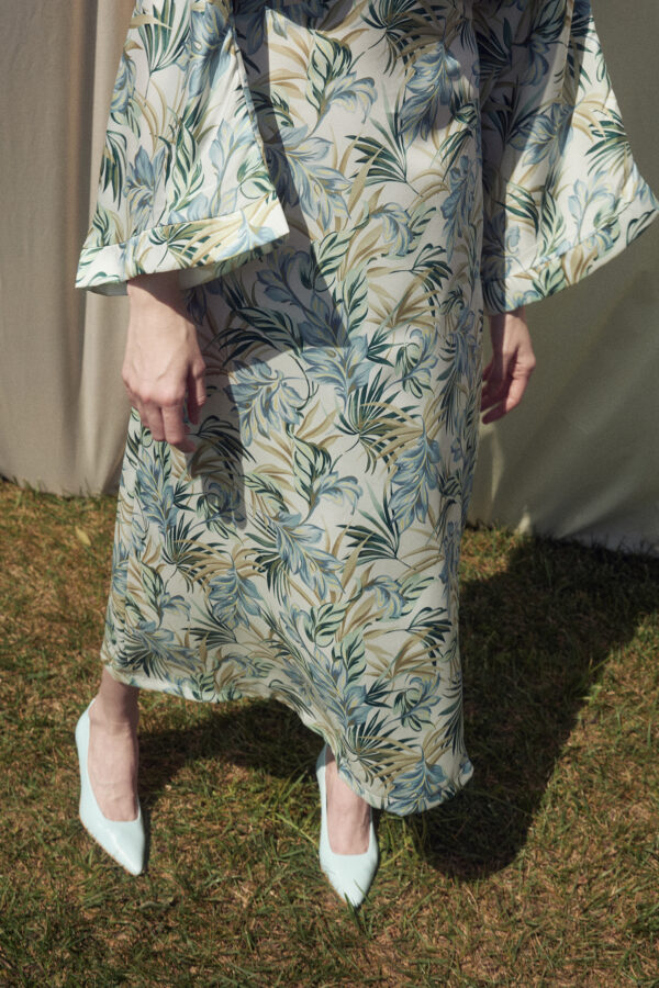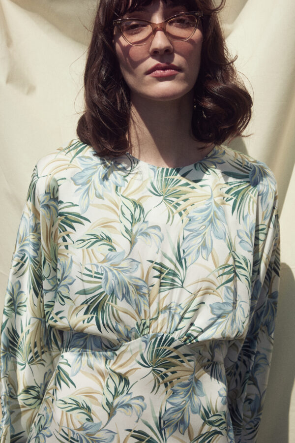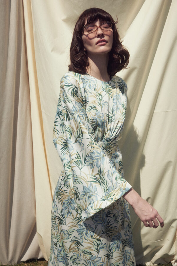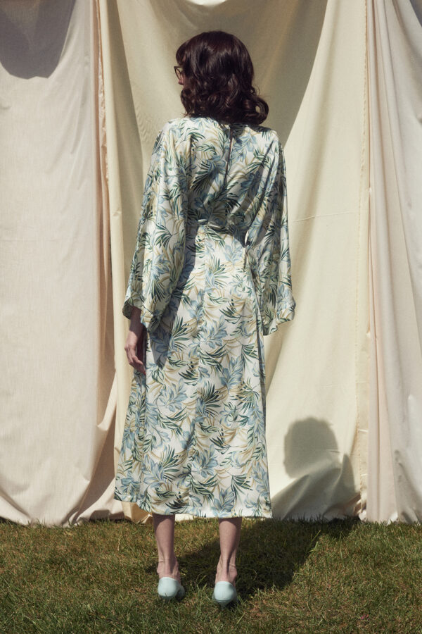 - Regular fit midi dress with round neckline and long batwing sleeves.
